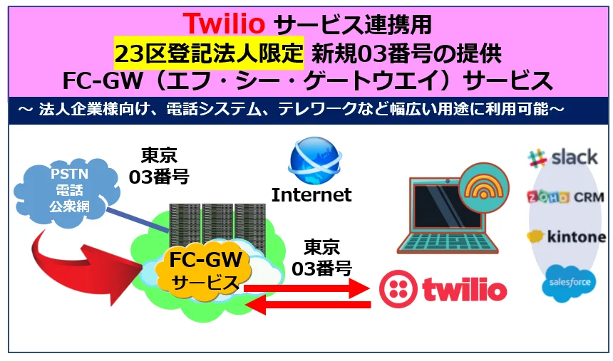 Twilioを使っているユーザは、FC-GWに接続することで、新規に03番号を利用することが可能になります。