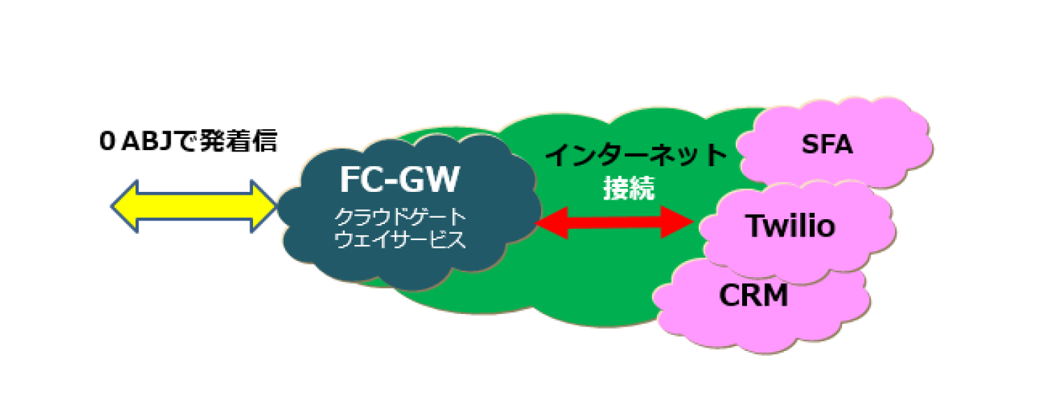 TwilioとFC-GWが接続されることで、Twilio環境において0ABJの電話番号があつかえるようになります。