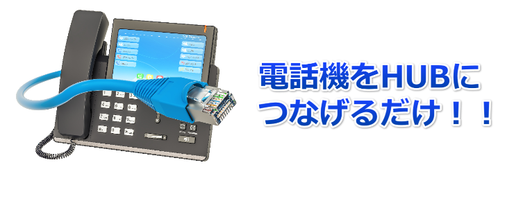 ビジネスフォンのように電話機を追加するたびに工事が発生することはありません。電話機を社内のHUBにLANケーブルで接続するだけでもう接続完了です。