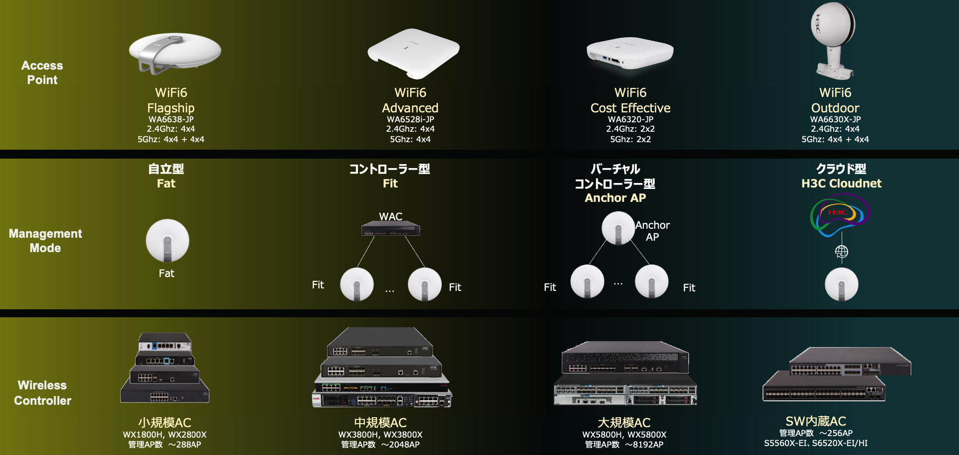 日本向けに4種類のAPを用意しており、Wireless LANコントローラも小規模から大規模までラインアップされています。